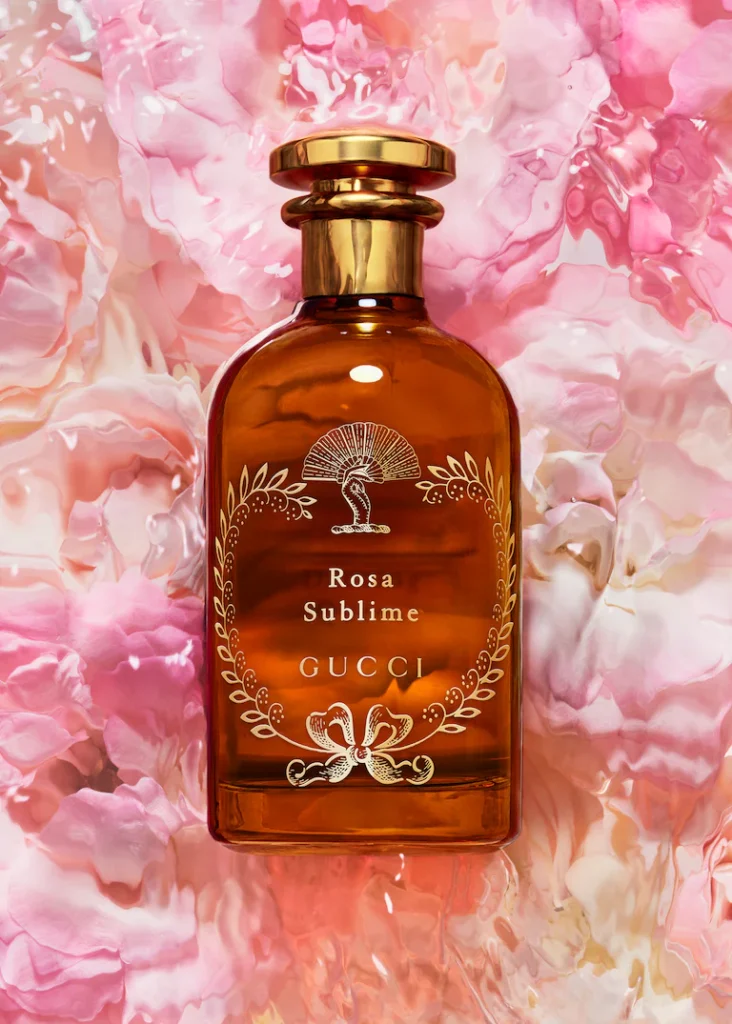 Rosa Sublime represents the Liquidum (water) Stage of alchemy. For this stage, Gucci has created an ambery spicy floral perfume.